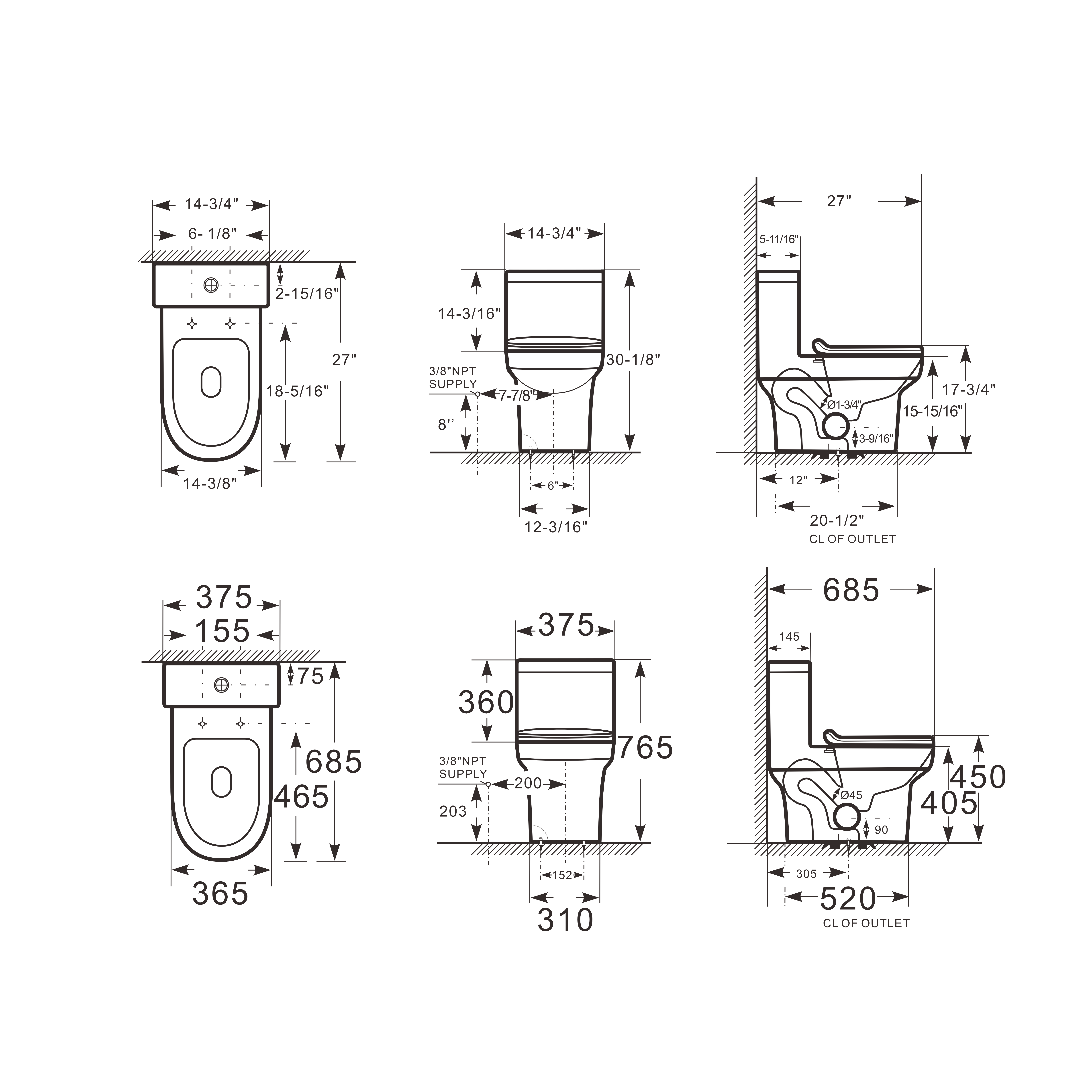 Nominal water consumption: 1.28 GPF Full flush/ 1.08 GPF Half flush