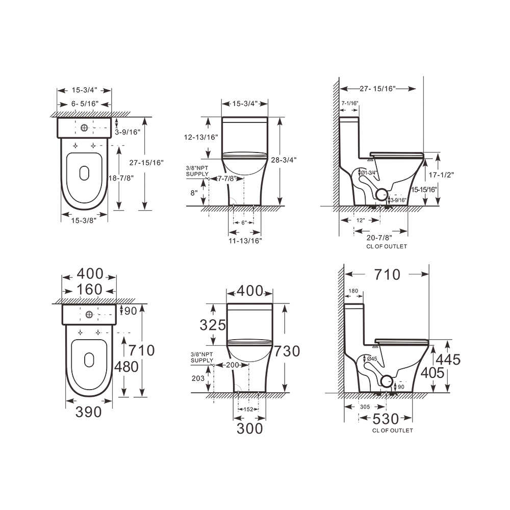 Nominal water consumption: 1.28 GPF Full flush/ 1.08 GPF Half flush